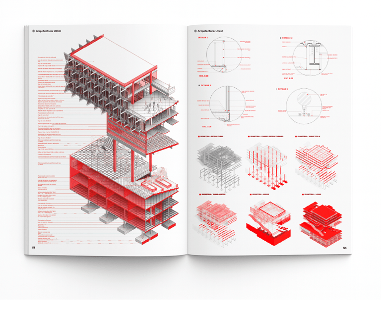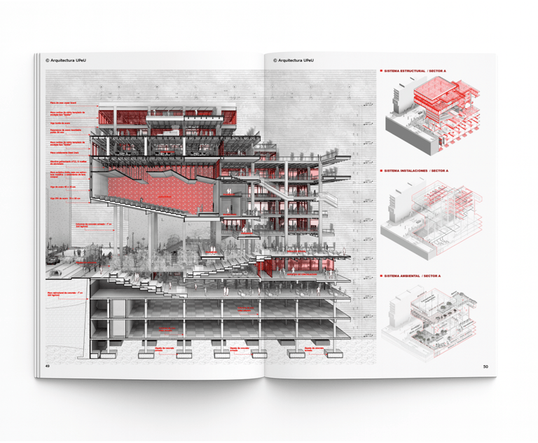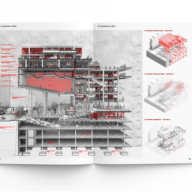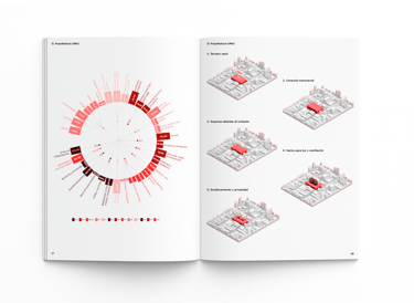 Pensamiento arquitectónico, diagramas y ciudad en formato editorial.